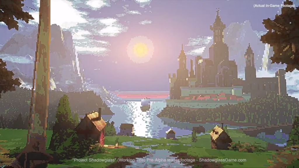 O apelo inicial de Project Shadowglass reside em seu estilo gráfico singular: ele mistura a perspectiva e a liberdade de movimentação de um ambiente 3D moderno com o charme nostálgico e a profundidade visual da pixel art. O resultado é um mundo de fantasia lindamente iluminado, visto da perspectiva em primeira pessoa, com uma sensação de profundidade e atmosfera que poucas produções conseguem alcançar.